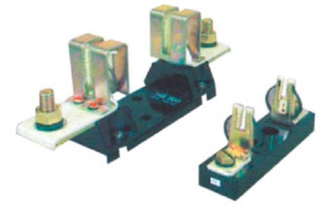 Carrier contacts and Base contacts are mounted using locating ridges formed on the mouldings, assuring perfect alignment. Spring pressure of clips in 32A, 63A. & 125A. Fuse Holders and a special high pressure metal backing stirrup in Fuse Holders provided lasting contact surface. The stirrups are not required to current.