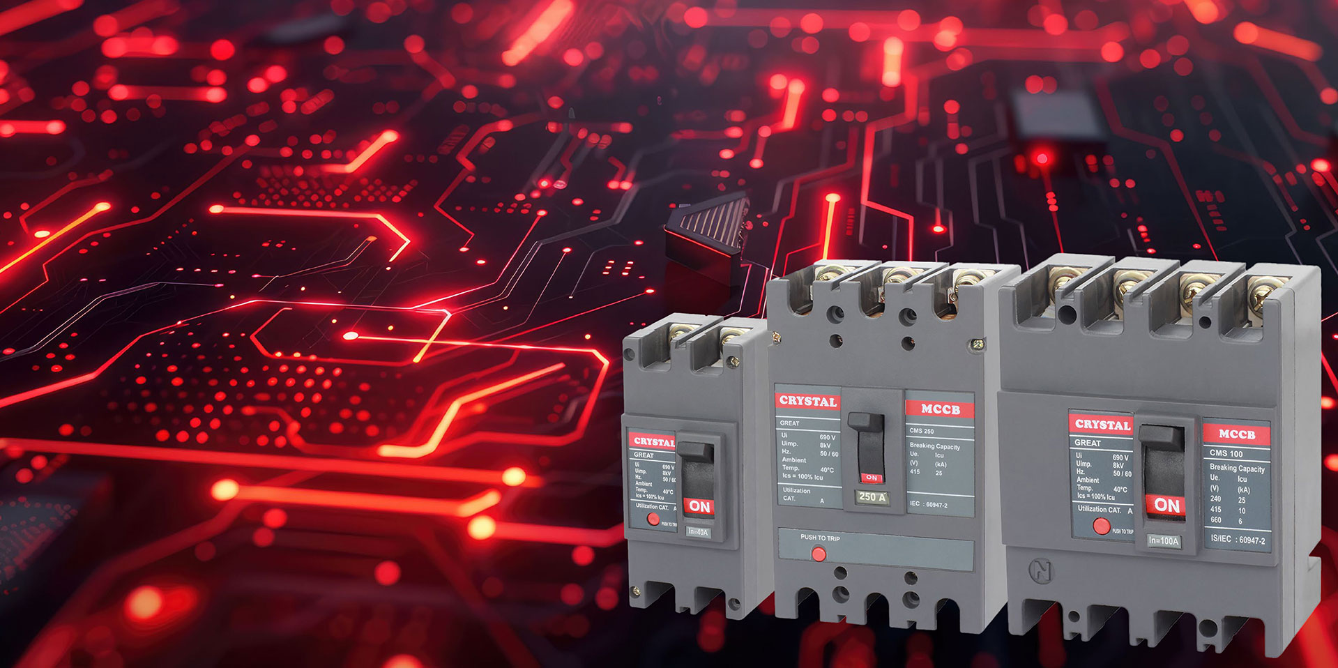 CRYSTAL MCCBs are precision‑engineered to meet world‑class standards, delivering superior protection and reliable performance across diverse applications. Designed to safeguard electrical systems, they provide comprehensive overload and short‑circuit protection, ensuring the safety and efficiency of your power distribution and motor control systems.